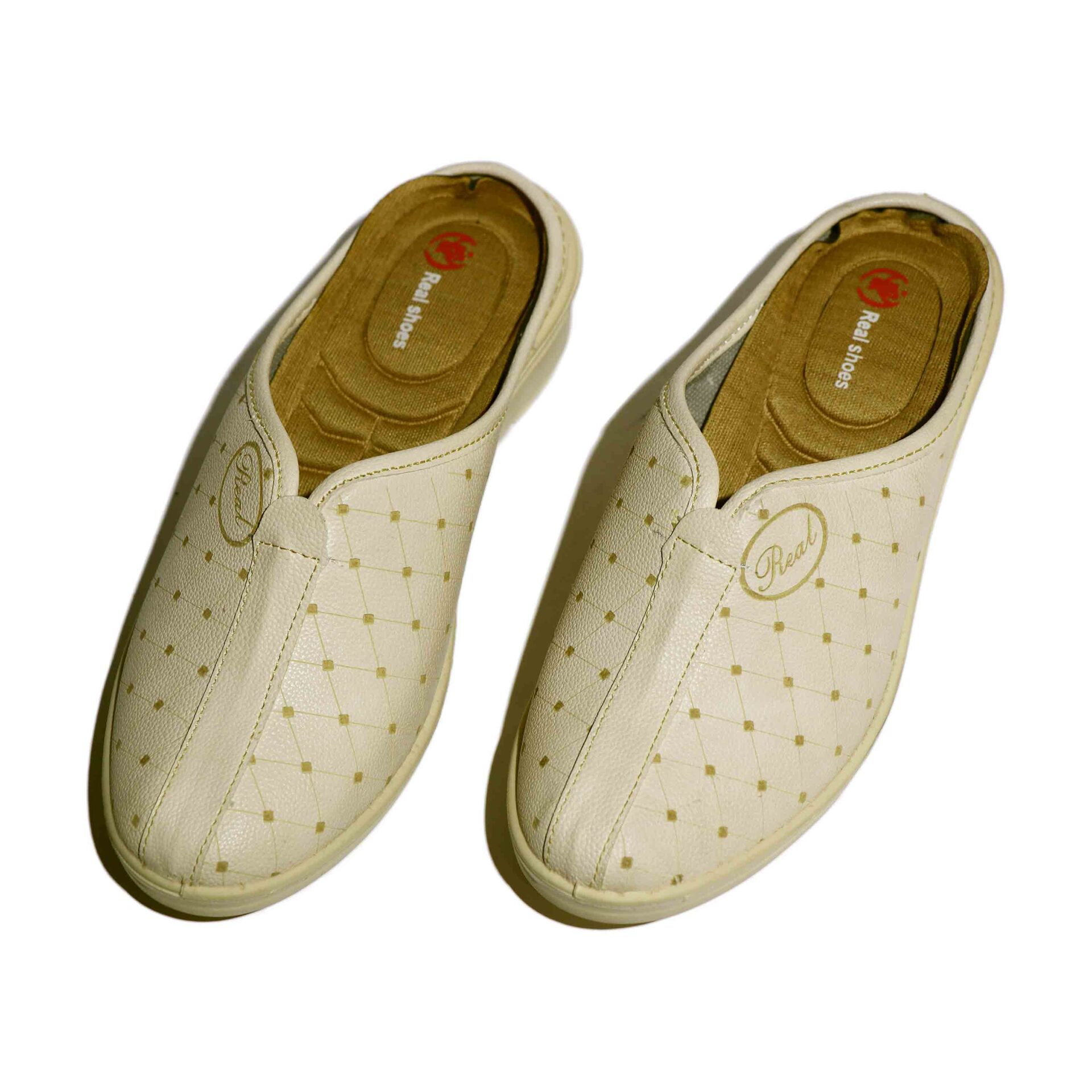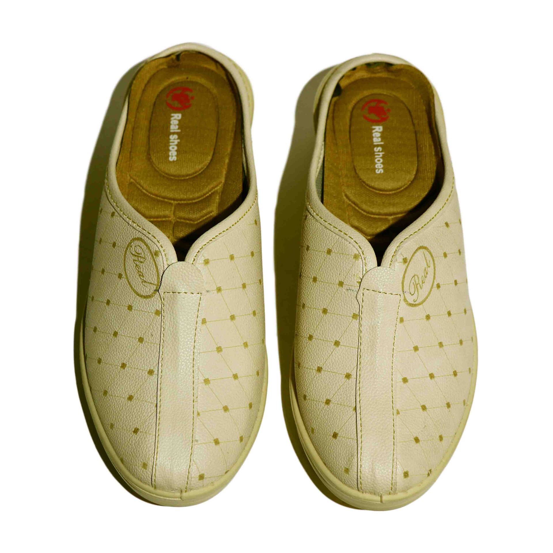 صندل زیره طبی جلو بسته زنانه شرکت رئال مدل شقایق رنگ کرم