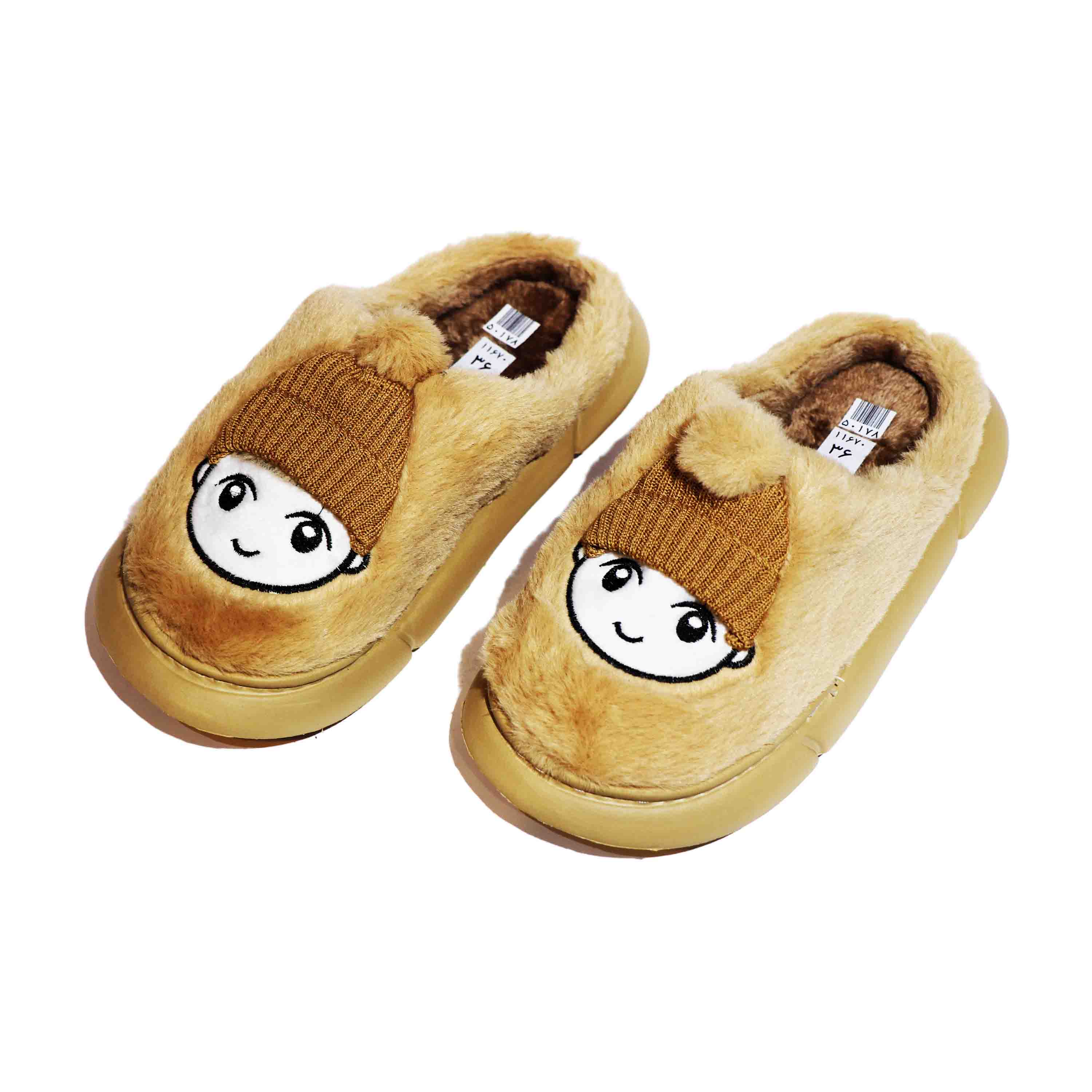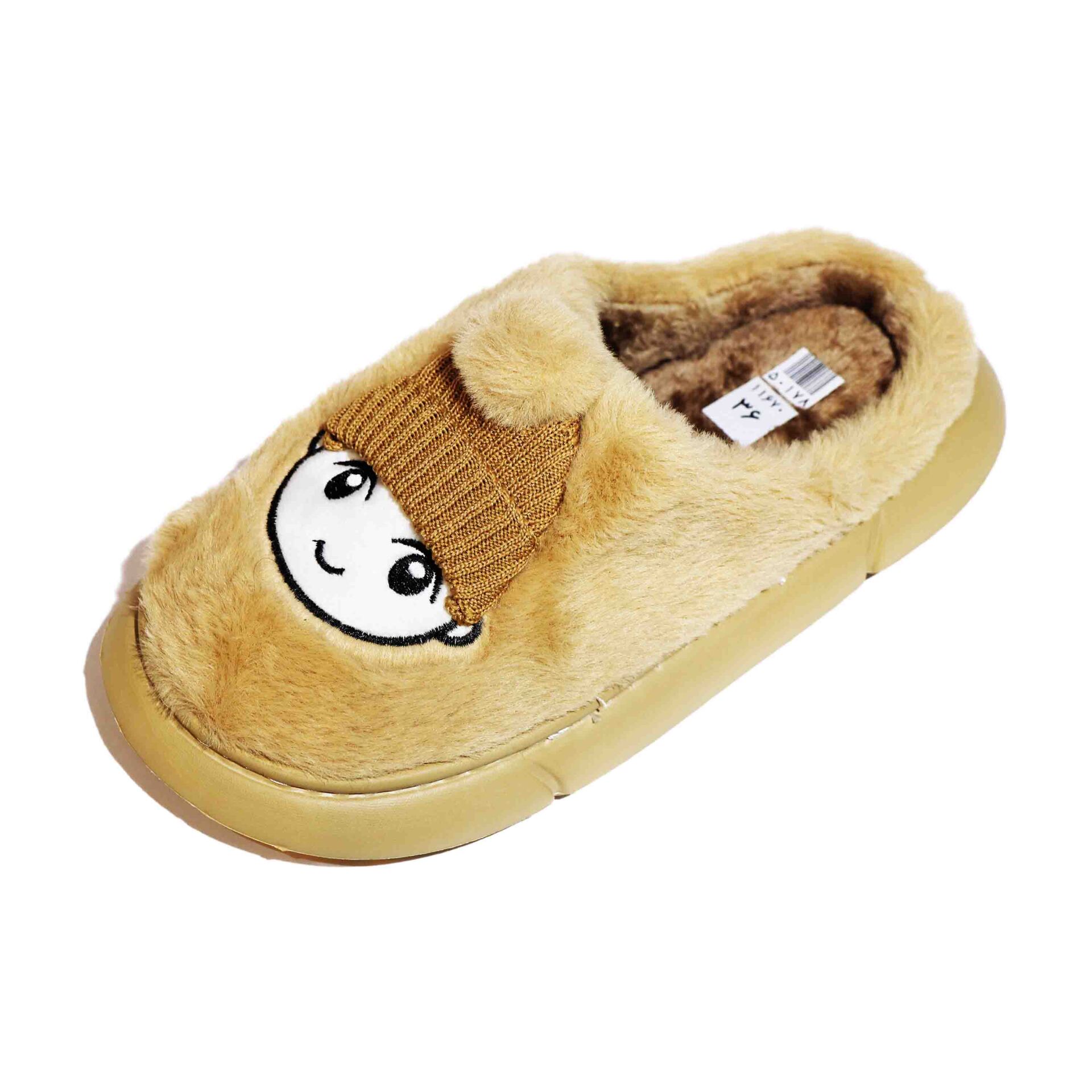 دمپایی اسلیپر زنانه جلو بسته پشت باز حوله ای خزدار فامیلی مدل عروسکی نسکافه ای دزلی کد 116700525