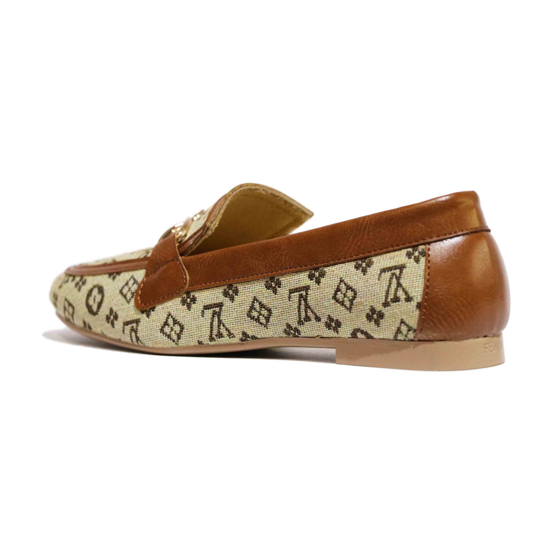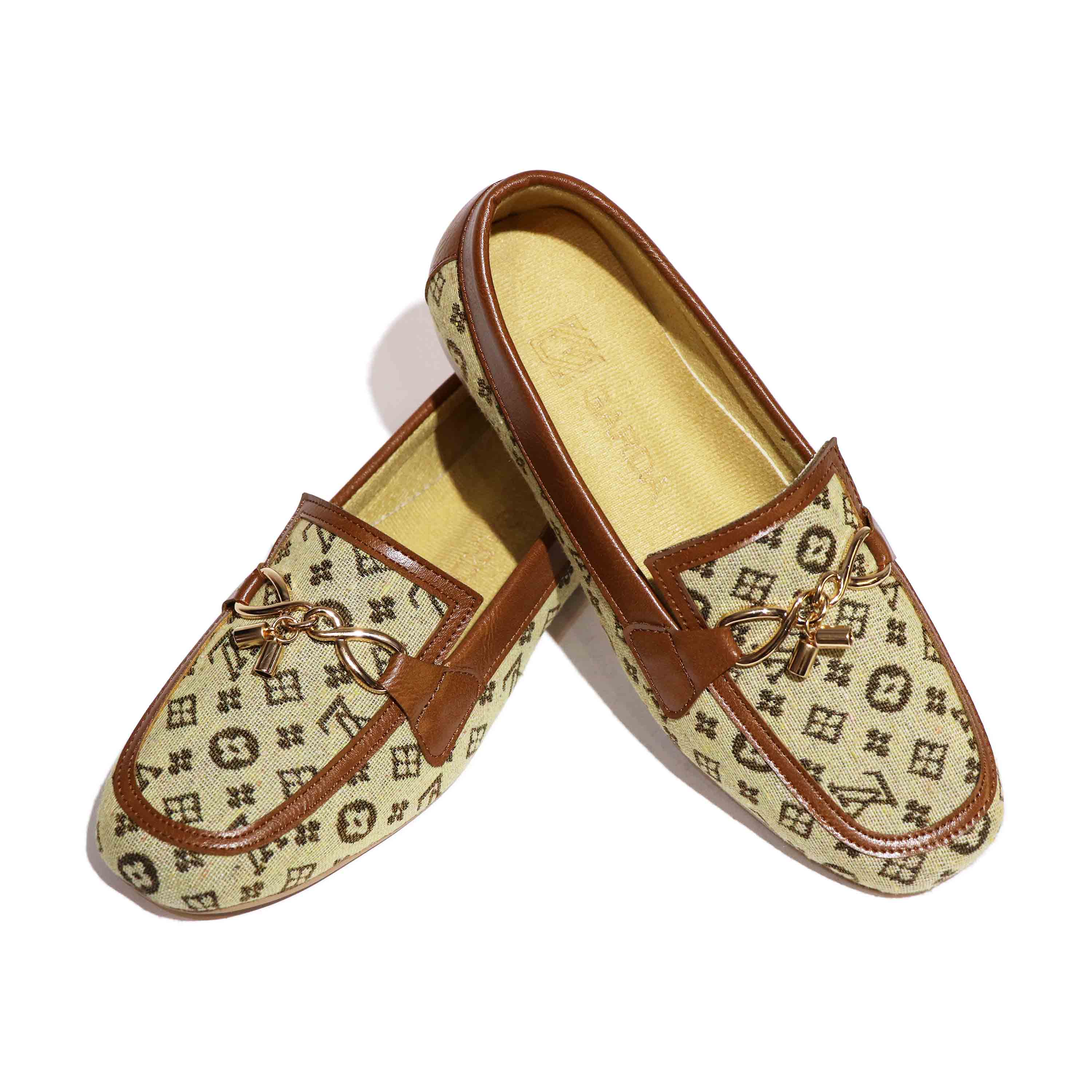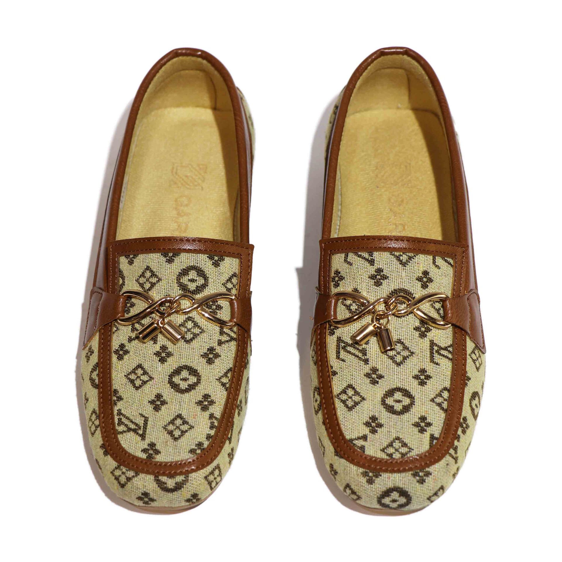 این کفش کالج با طراحی خاص و لوکس، ترکیبی از راحتی و زیبایی را به نمایش میگذارد. رویهی آن از پارچهی کرمرنگ با طرحهای هندسی و نمادهای تیره ساخته شده که حس برندهای معروف را تداعی میکند. لبههای کفش با چرم قهوهای تزئین شدهاند که هم دوام را افزایش میدهد و هم جلوهای کلاسیک به آن میبخشد. در قسمت جلویی، زنجیر فلزی طلایی با آویز قفل و کلید کوچک قرار گرفته که نمادی از ظرافت و جزئینگری در طراحی است. زیرهی کفش صاف و کرمرنگ است و برای استفاده روزمره یا مهمانیهای نیمهرسمی مناسب به نظر میرسد. داخل کفش با آستر نرم و رنگ روشن پوشیده شده که راحتی پا را در طول روز تضمین میکند. نام برند "Bacca Bucci" بهصورت محو روی کفی داخلی دیده میشود و حس خاص بودن را القا میکند. این مدل برای کسانی طراحی شده که به دنبال استایل متفاوت، شیک و در عین حال راحت هستند. رنگبندی گرم و جزئیات طلایی آن بهراحتی با لباسهای رسمی یا کژوال ست میشود. در مجموع، این کفش انتخابی عالی برای کسانیست که میخواهند با ظرافت و شخصیت قدم بردارند
