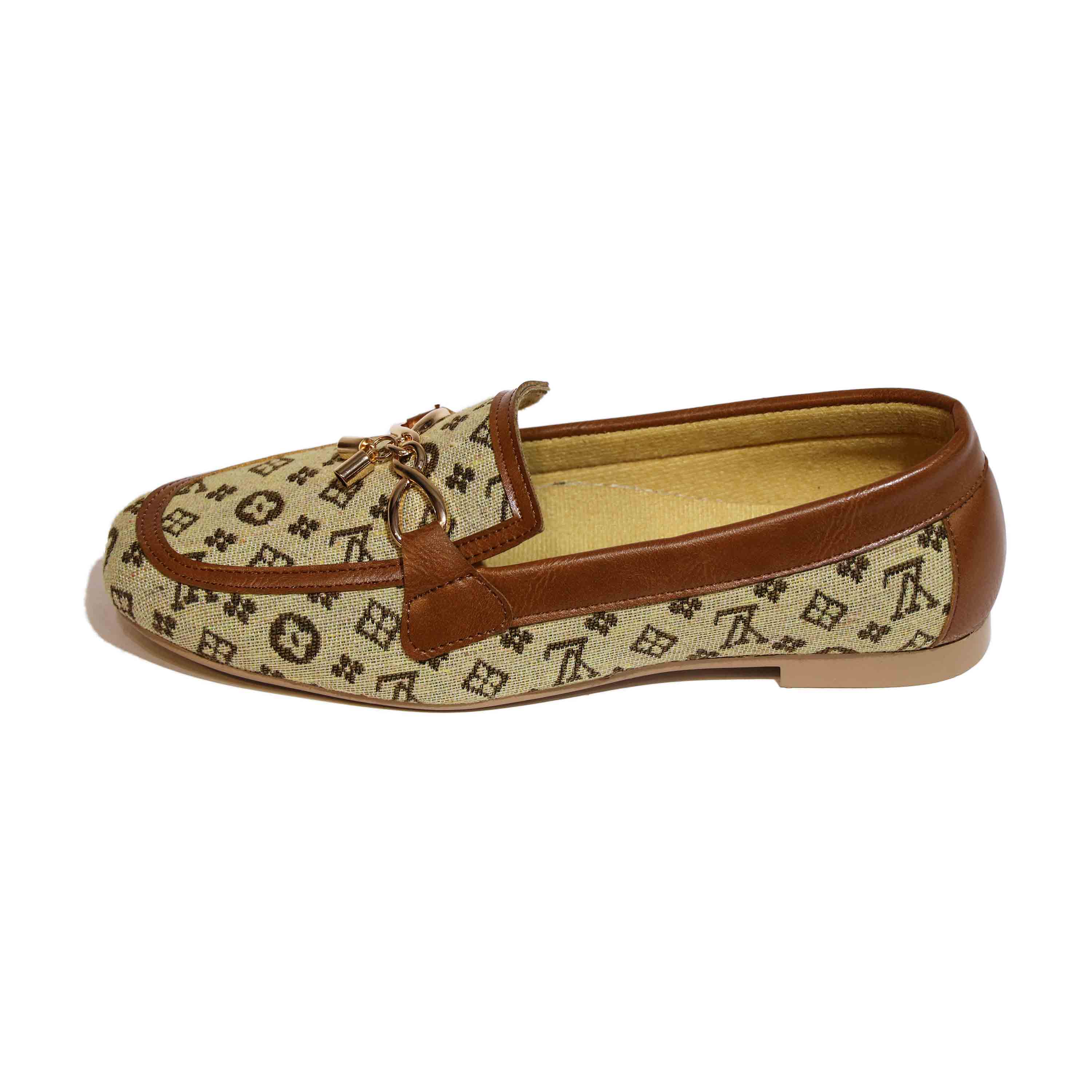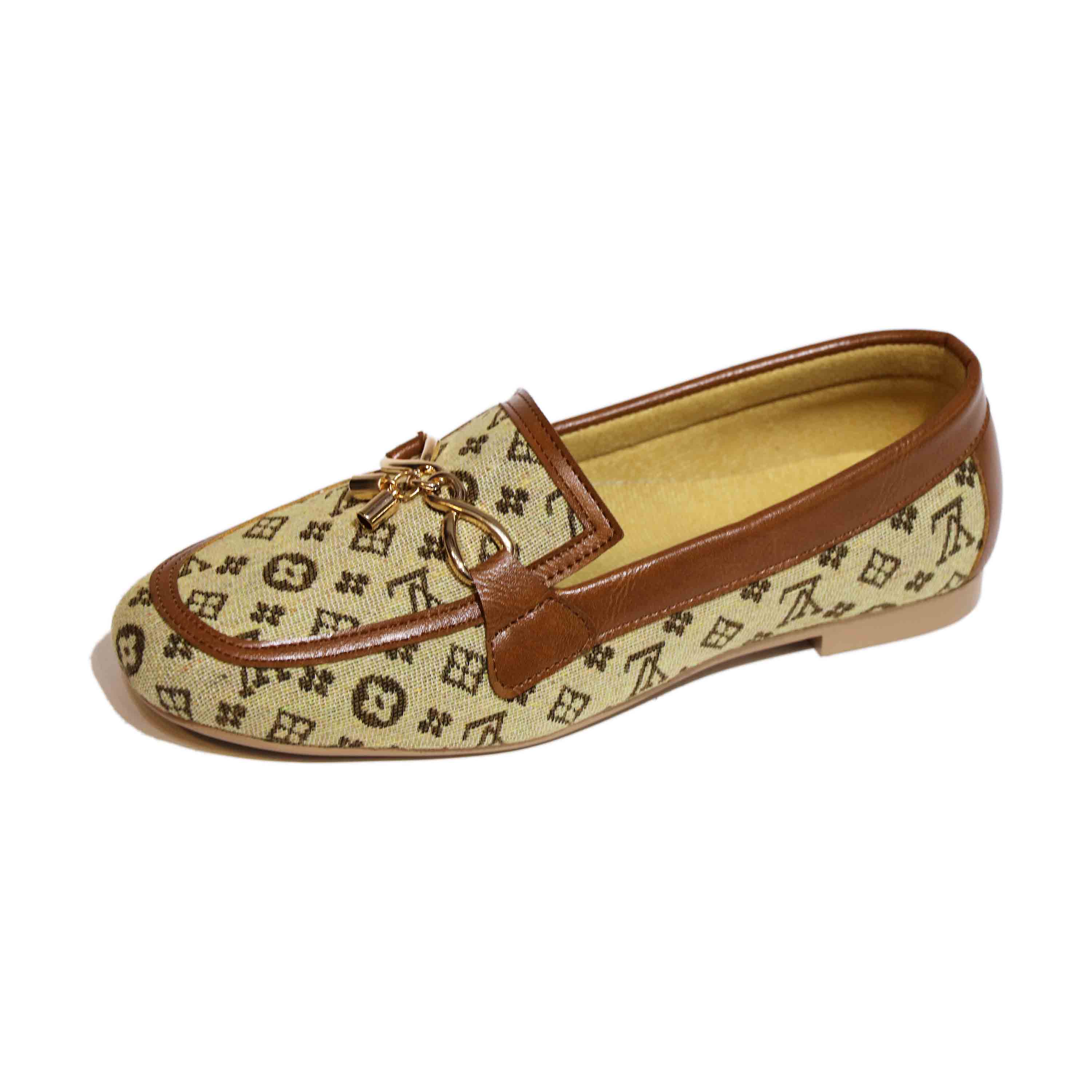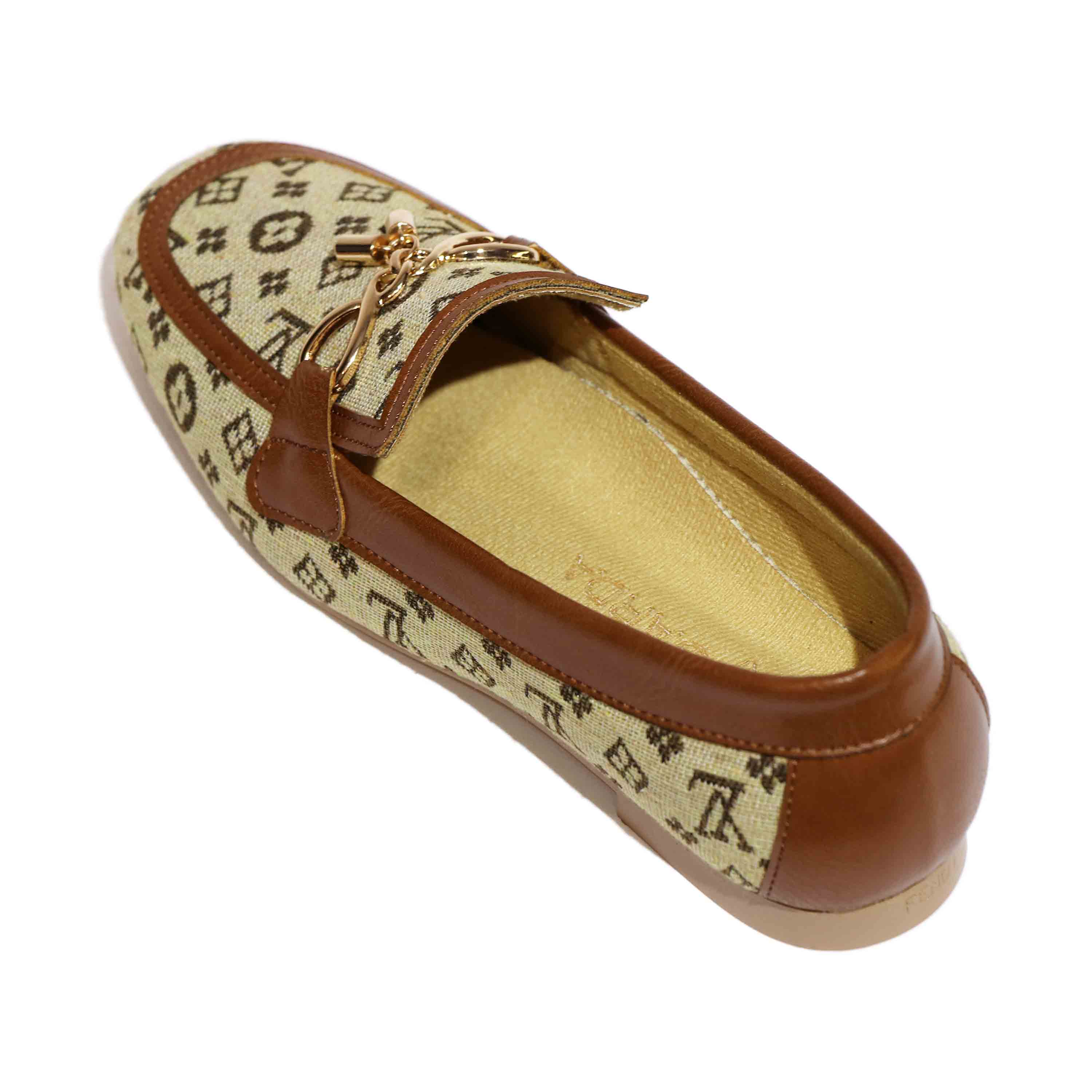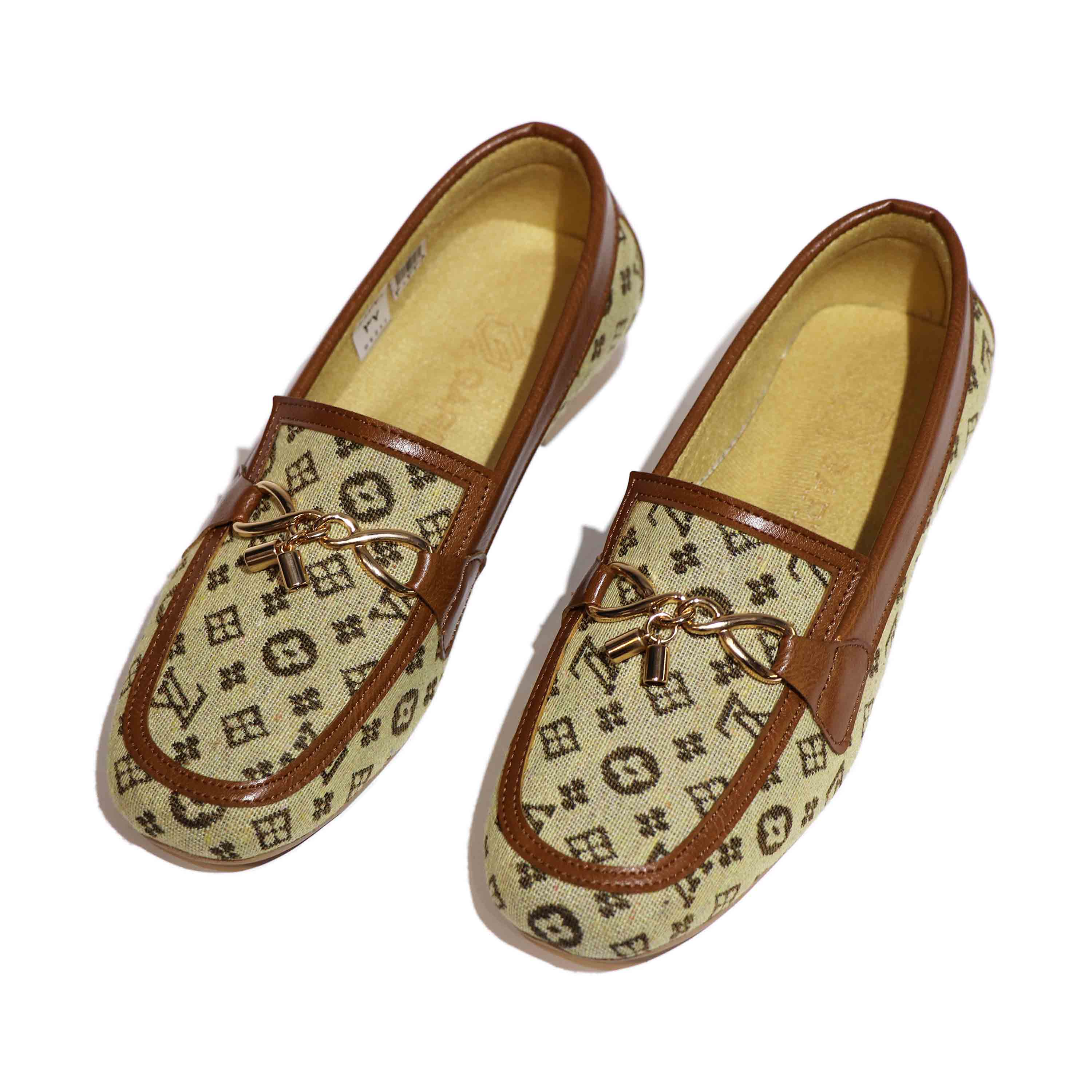 این کفش کالج با طراحی خاص و لوکس، ترکیبی از راحتی و زیبایی را به نمایش میگذارد. رویهی آن از پارچهی کرمرنگ با طرحهای هندسی و نمادهای تیره ساخته شده که حس برندهای معروف را تداعی میکند. لبههای کفش با چرم قهوهای تزئین شدهاند که هم دوام را افزایش میدهد و هم جلوهای کلاسیک به آن میبخشد. در قسمت جلویی، زنجیر فلزی طلایی با آویز قفل و کلید کوچک قرار گرفته که نمادی از ظرافت و جزئینگری در طراحی است. زیرهی کفش صاف و کرمرنگ است و برای استفاده روزمره یا مهمانیهای نیمهرسمی مناسب به نظر میرسد. داخل کفش با آستر نرم و رنگ روشن پوشیده شده که راحتی پا را در طول روز تضمین میکند. نام برند "Bacca Bucci" بهصورت محو روی کفی داخلی دیده میشود و حس خاص بودن را القا میکند. این مدل برای کسانی طراحی شده که به دنبال استایل متفاوت، شیک و در عین حال راحت هستند. رنگبندی گرم و جزئیات طلایی آن بهراحتی با لباسهای رسمی یا کژوال ست میشود. در مجموع، این کفش انتخابی عالی برای کسانیست که میخواهند با ظرافت و شخصیت قدم بردارند