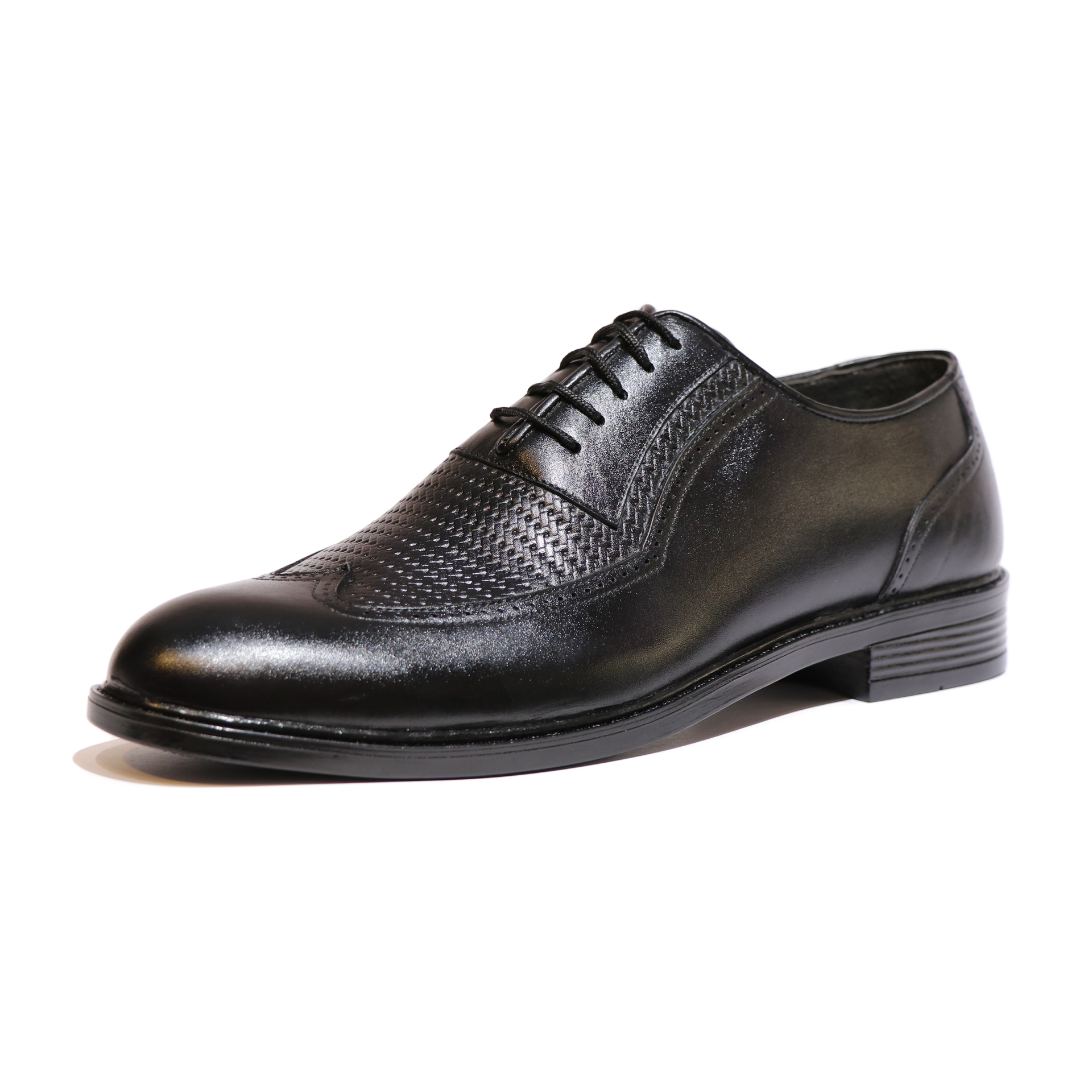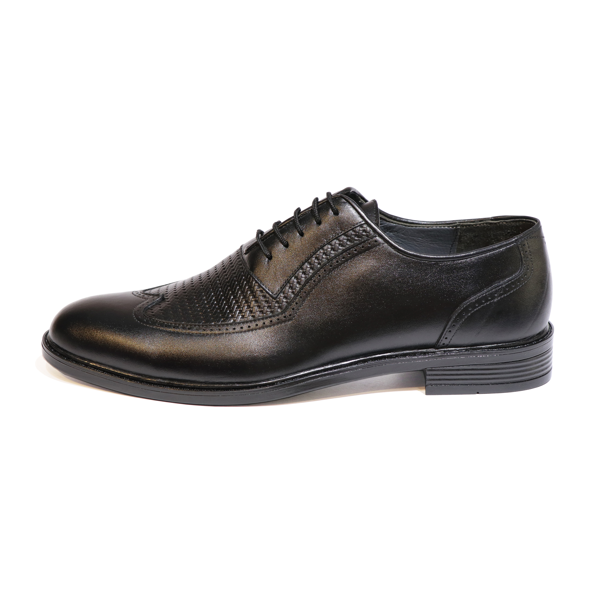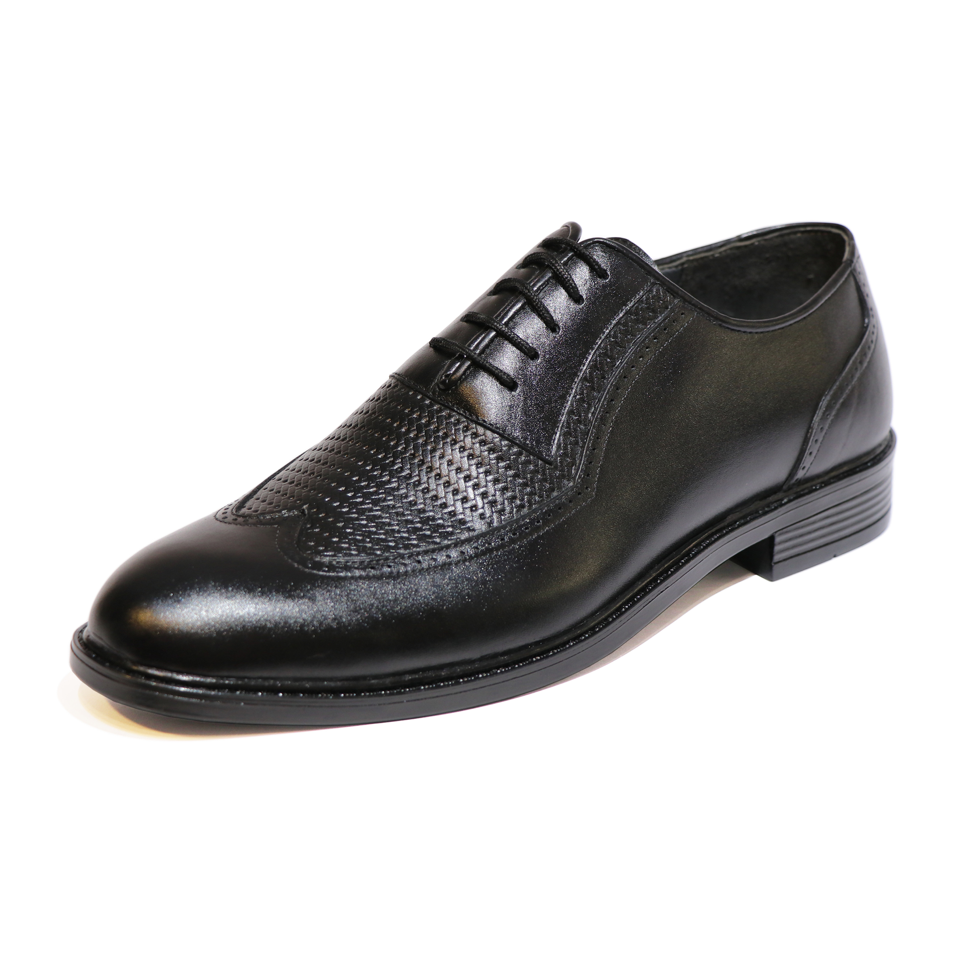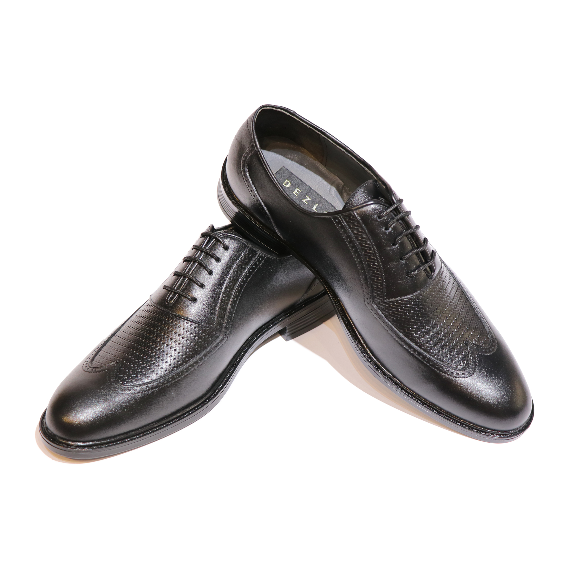 کفش رسمی مجلسی مردانه دزلی چرم طبیعی هشترک بندی مشکی کد 117010120