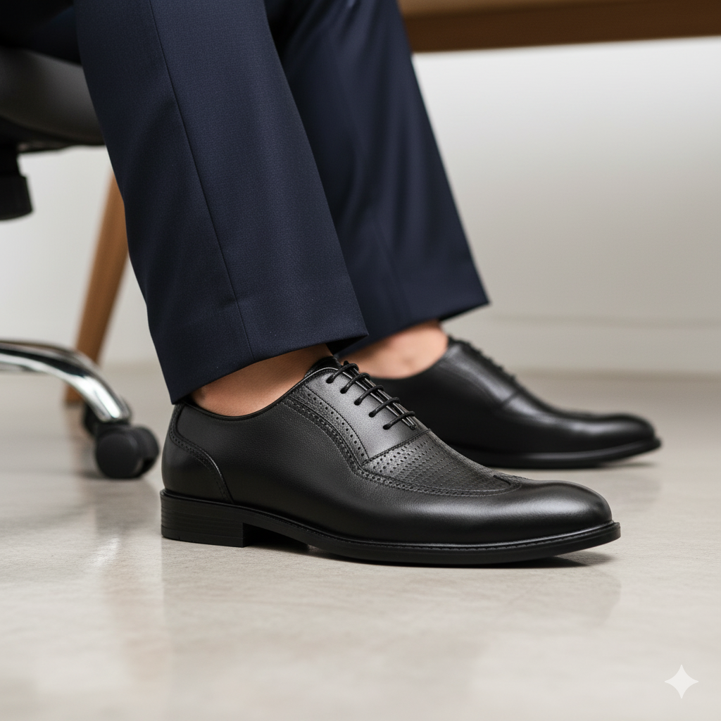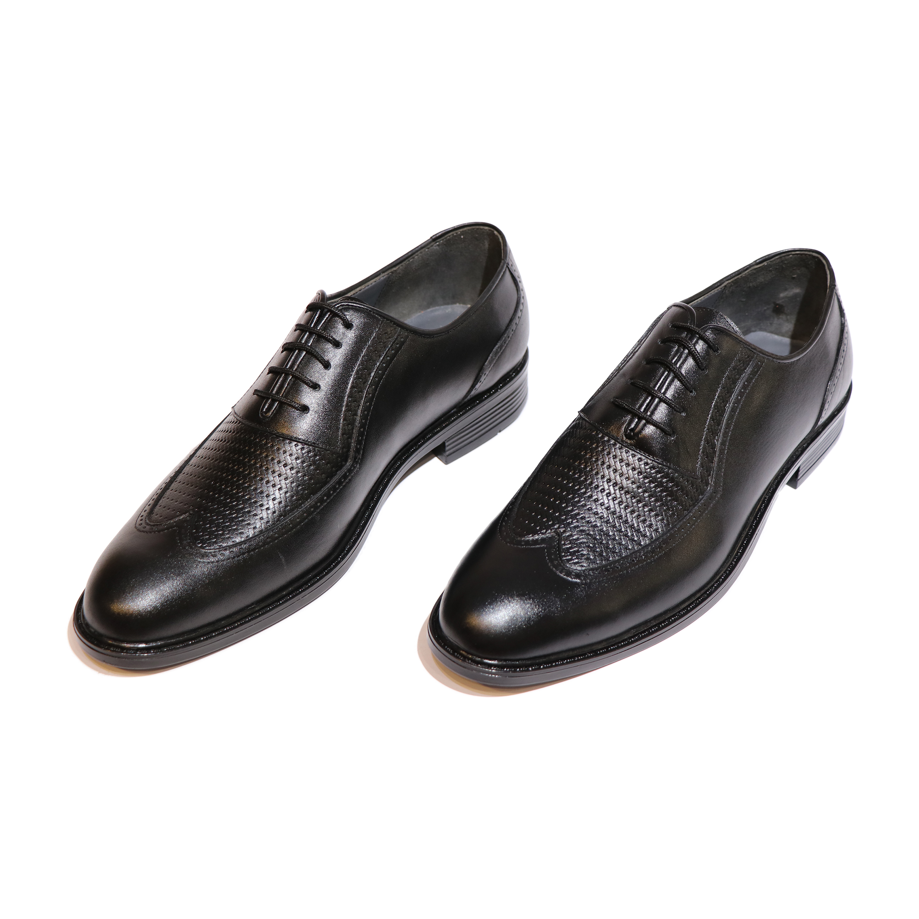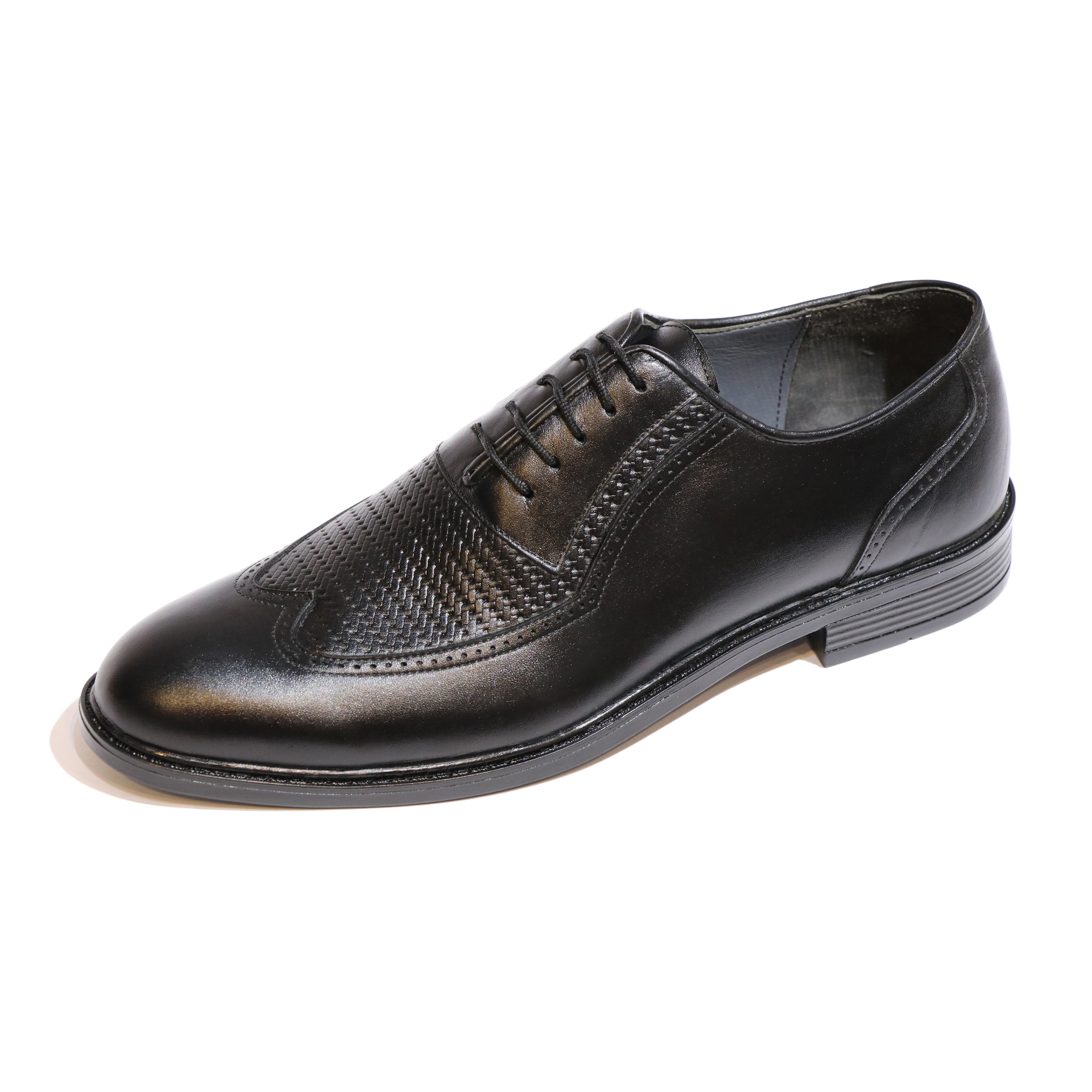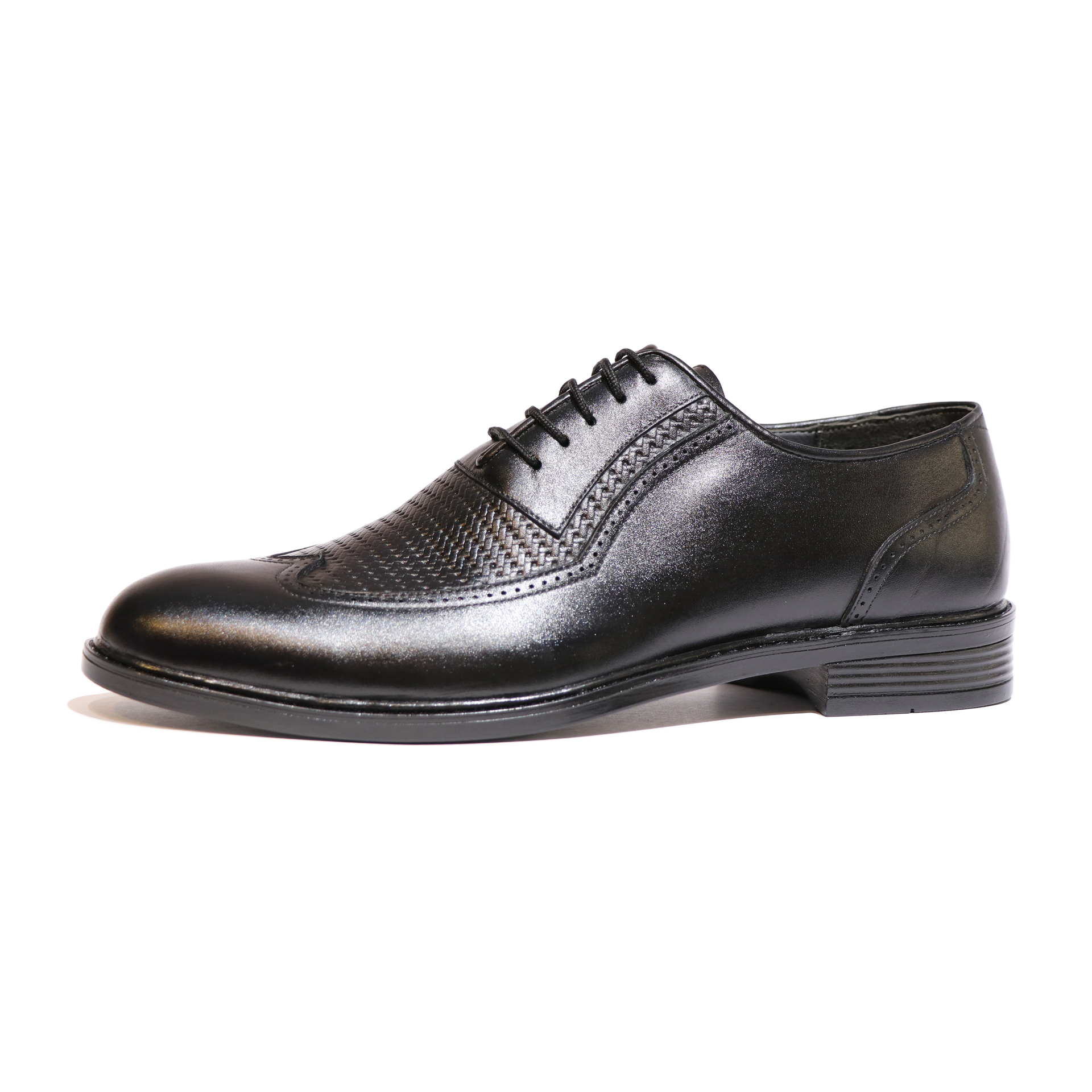 کفش رسمی مجلسی مردانه دزلی چرم طبیعی هشترک بندی مشکی کد 117010120