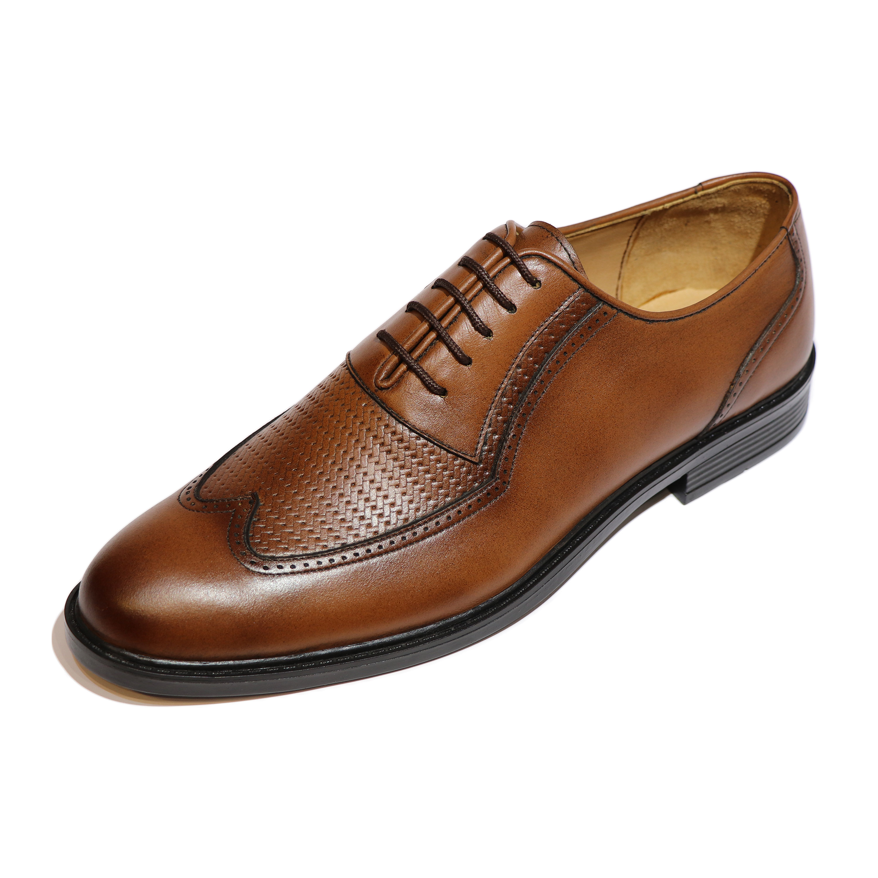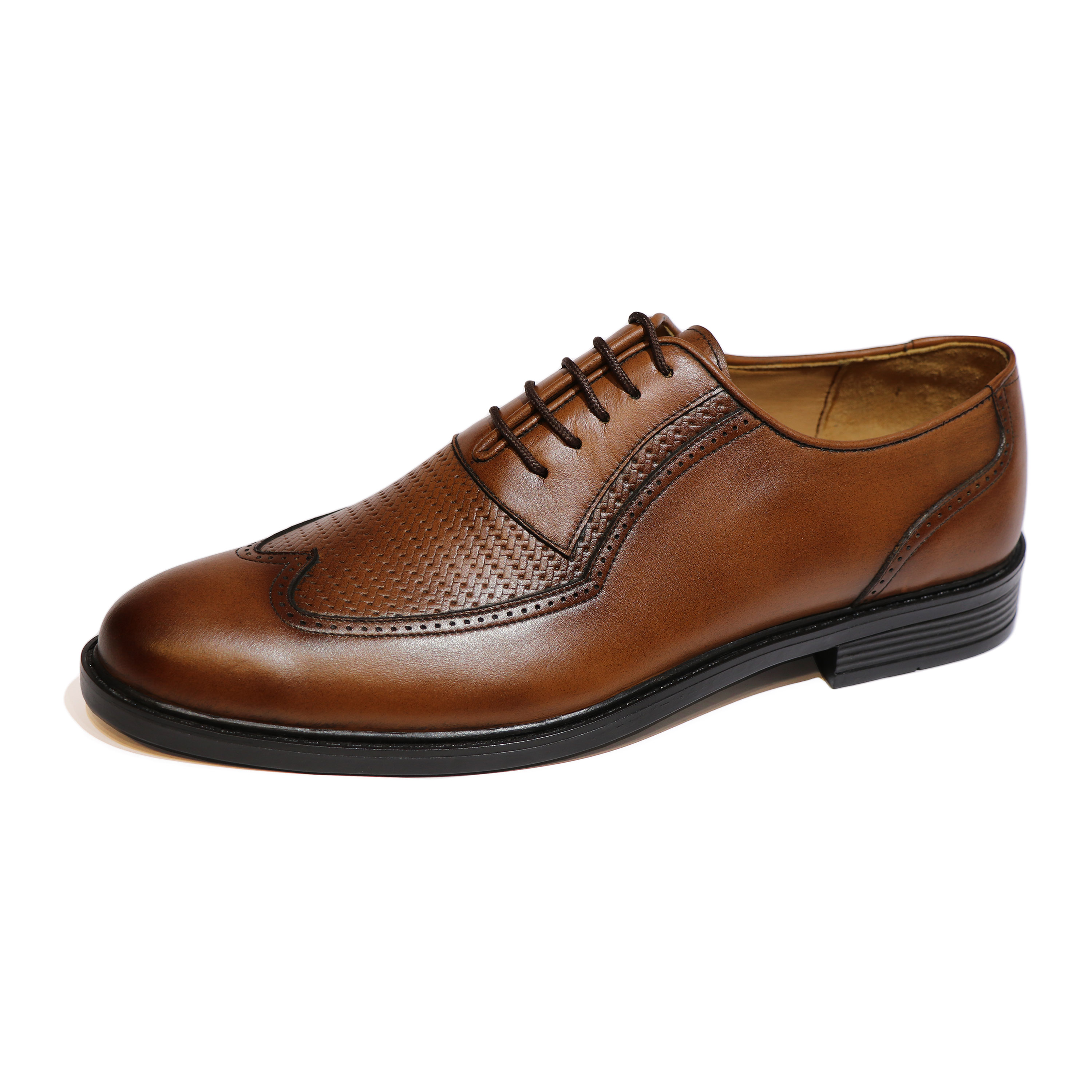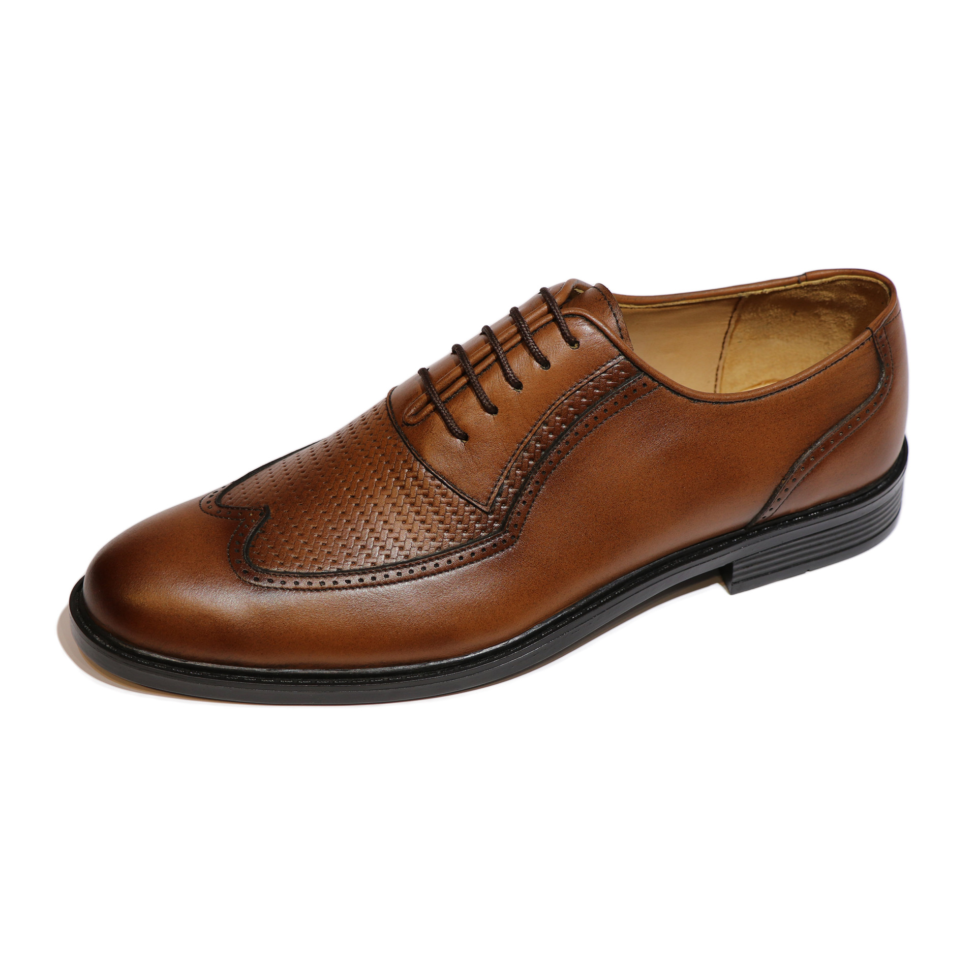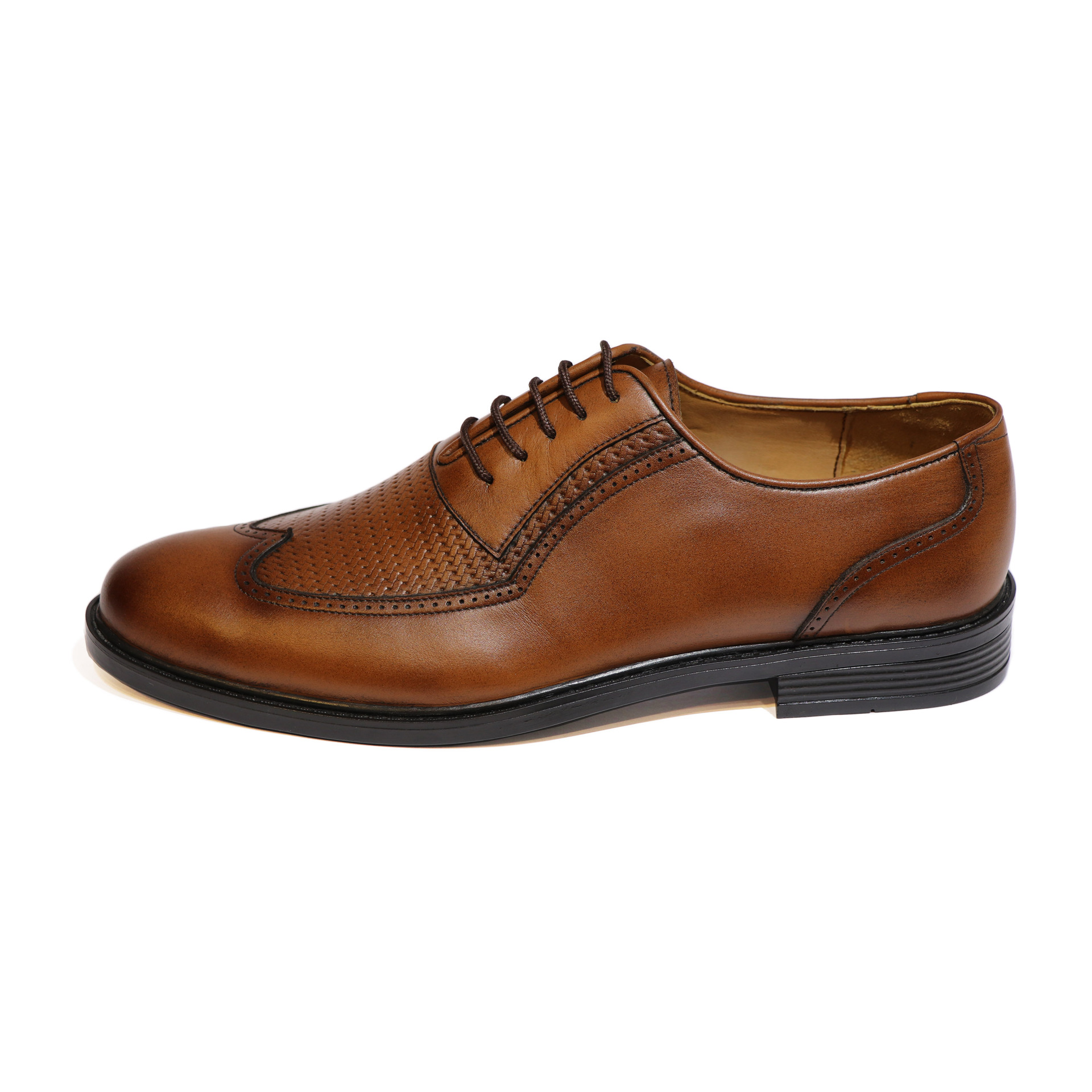 کفش رسمی مجلسی مردانه دزلی چرم طبیعی هشترک بندی عسلی کد 117011520