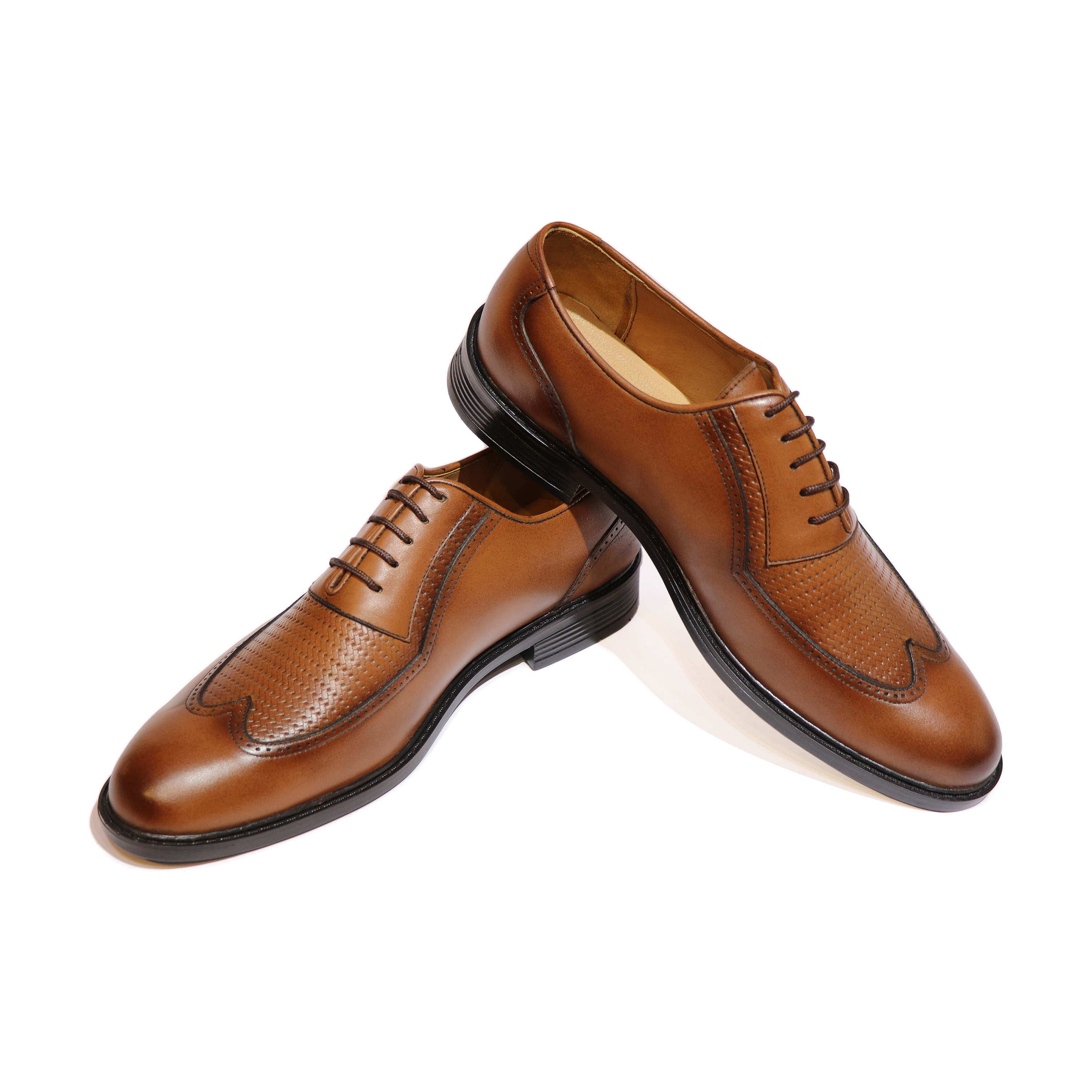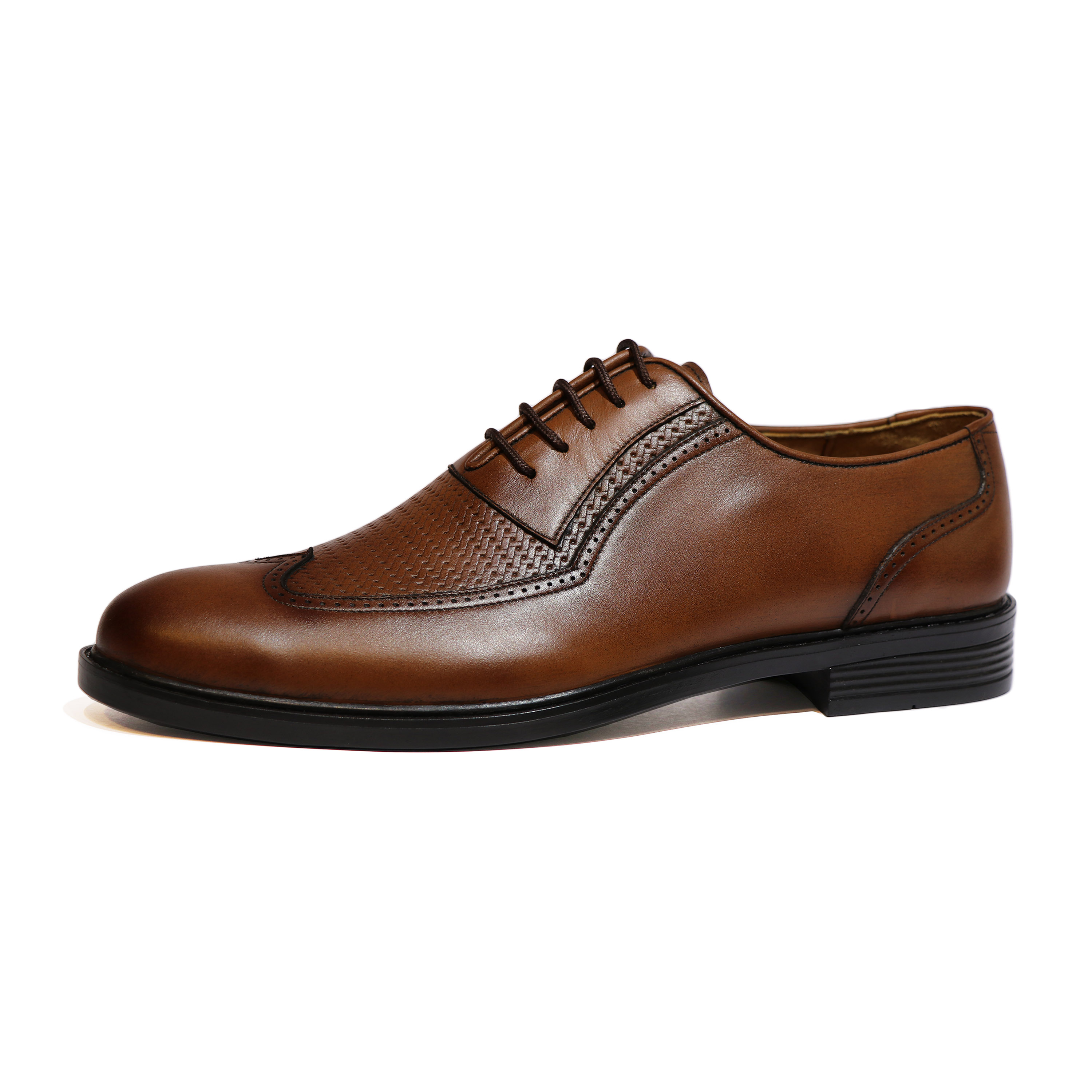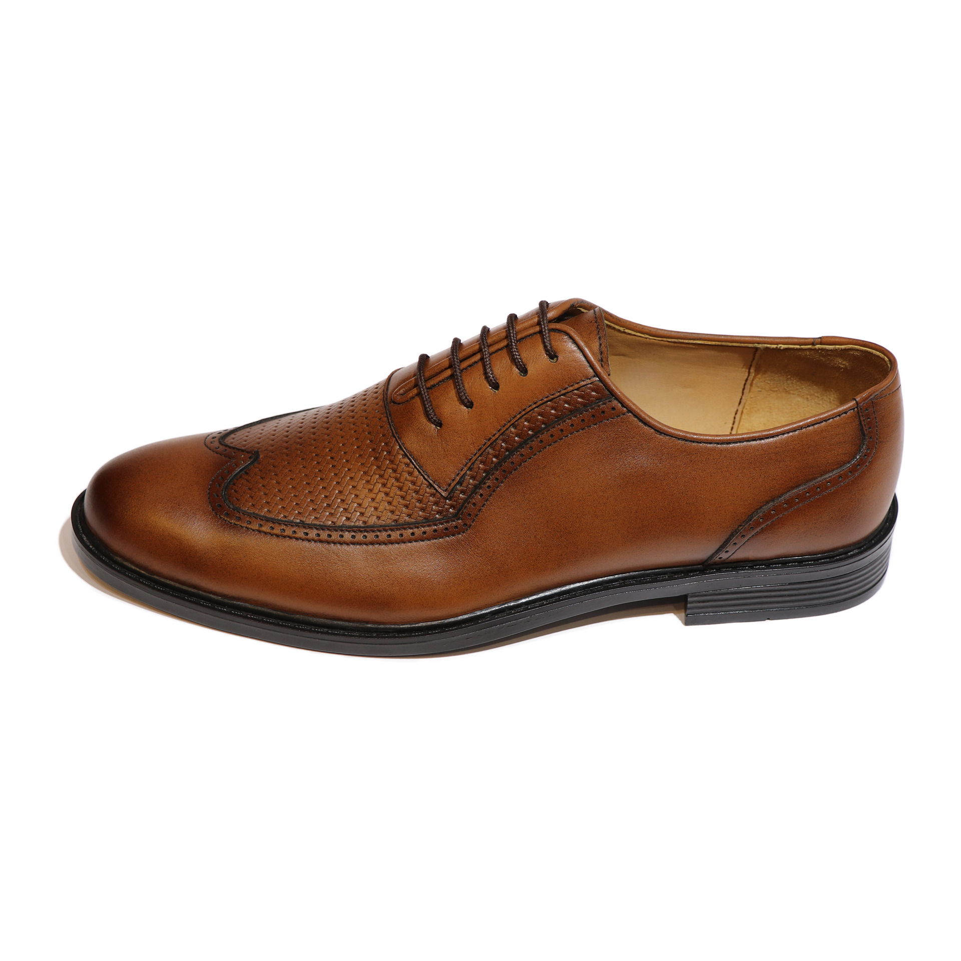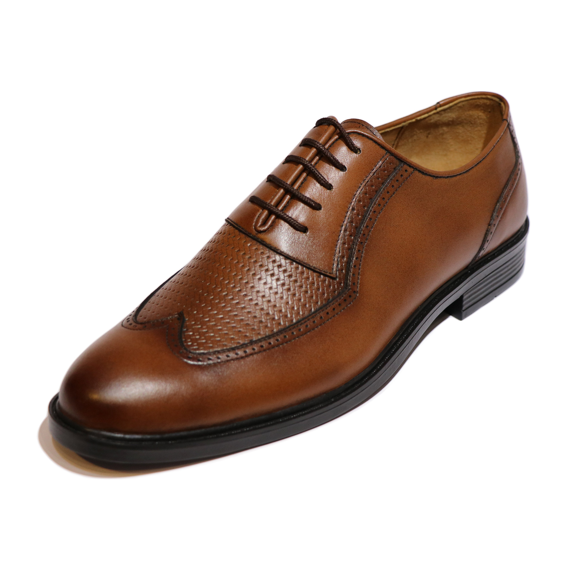 کفش رسمی مجلسی مردانه دزلی چرم طبیعی هشترک بندی عسلی کد 117011520