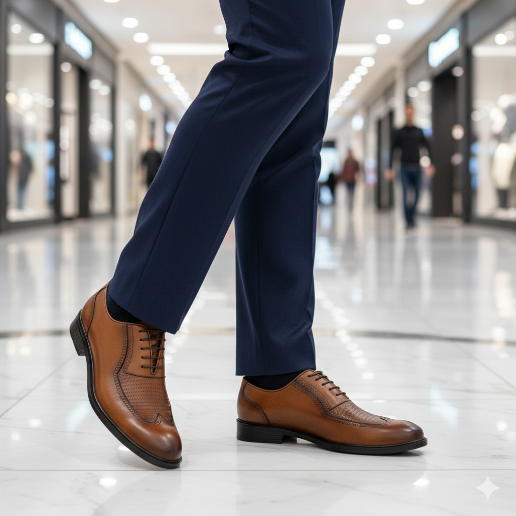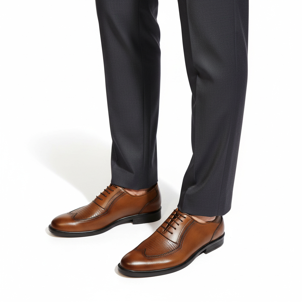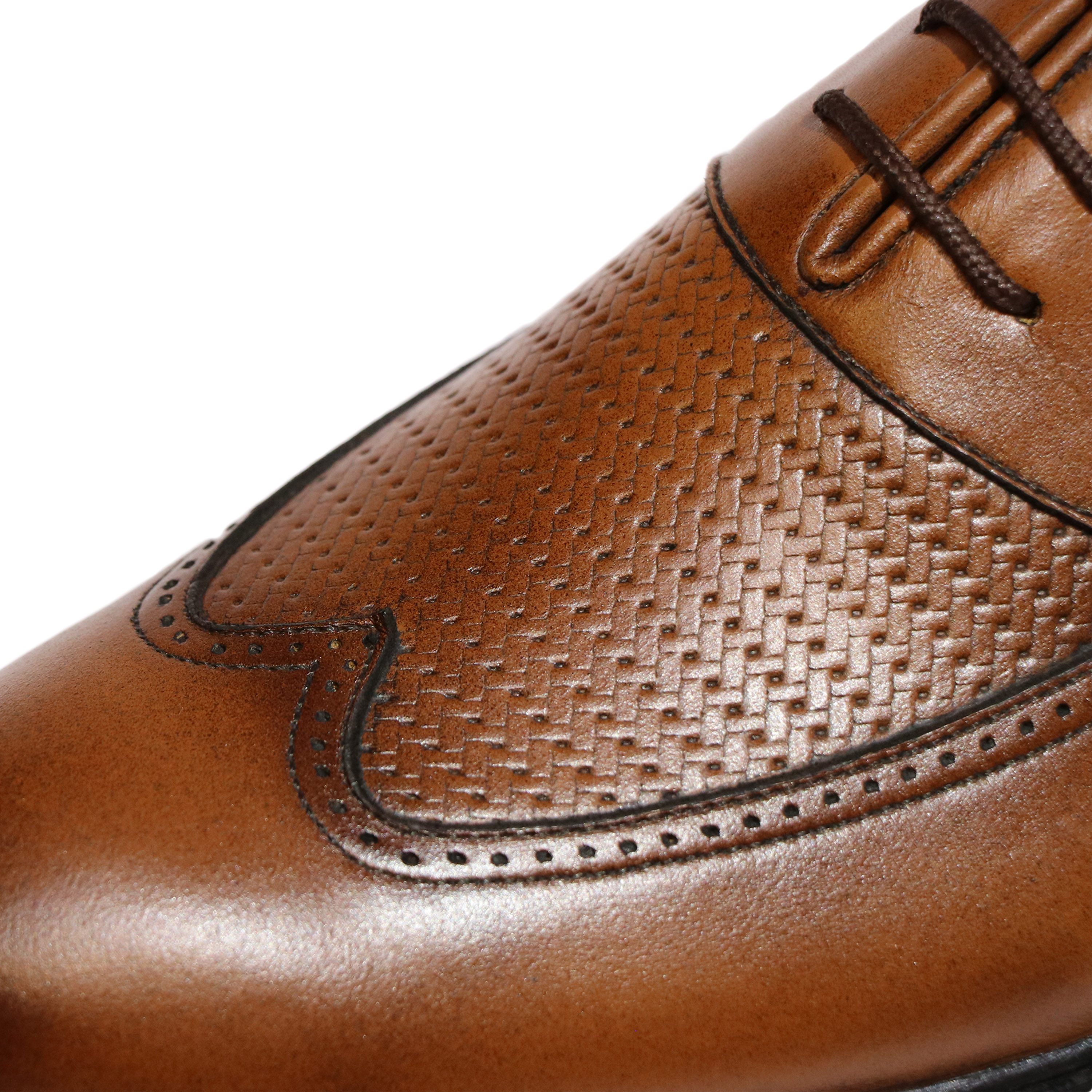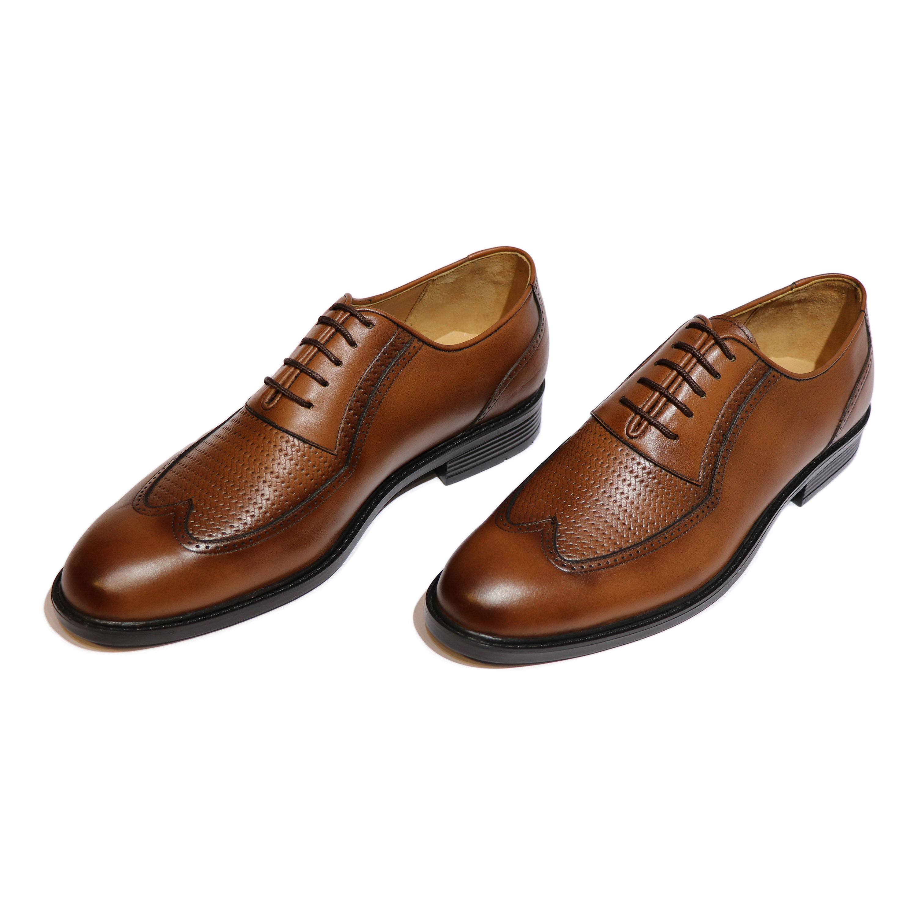 کفش رسمی مجلسی مردانه دزلی چرم طبیعی هشترک بندی عسلی کد 117011520