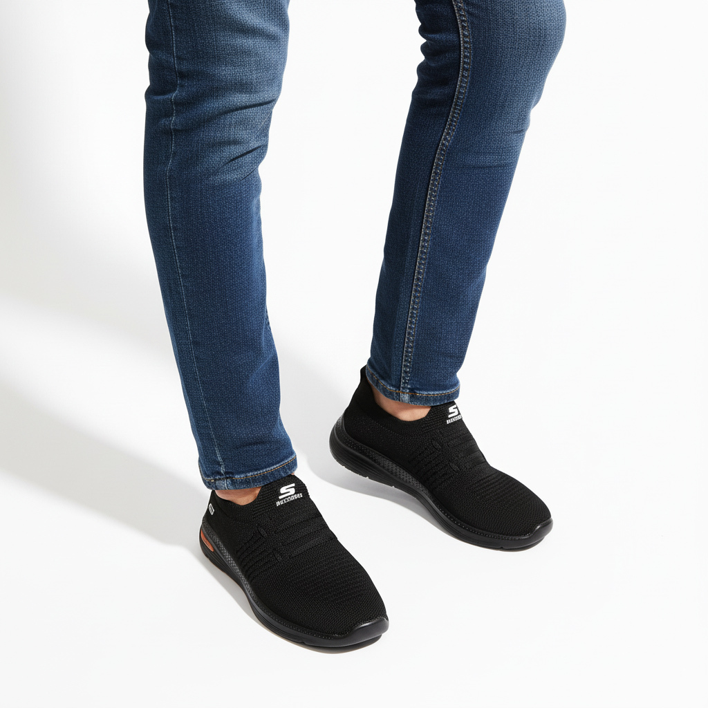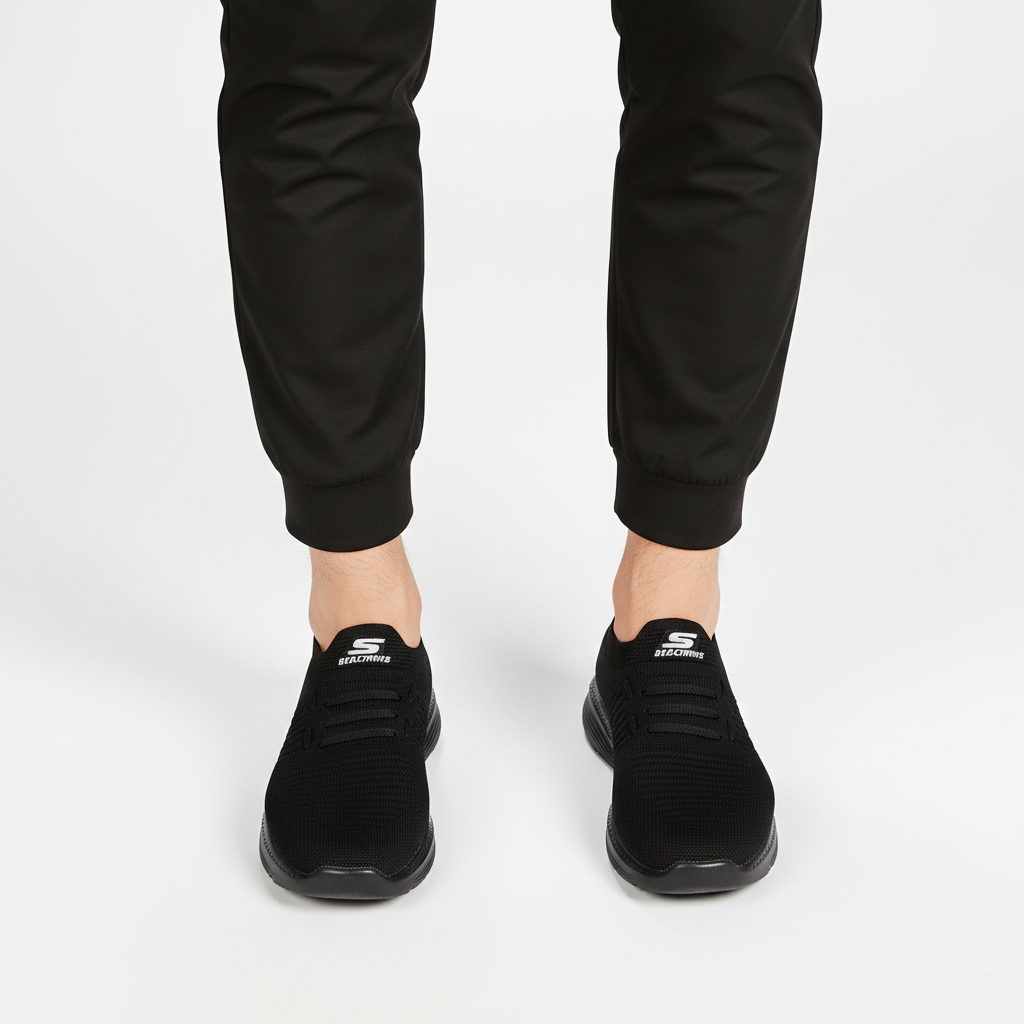 کفش کتونی اسپرت اسکیچرز Skechers جورابی بافتی مردانه روزمره راحتی مشکی آنتیک دزلی کد 116670116